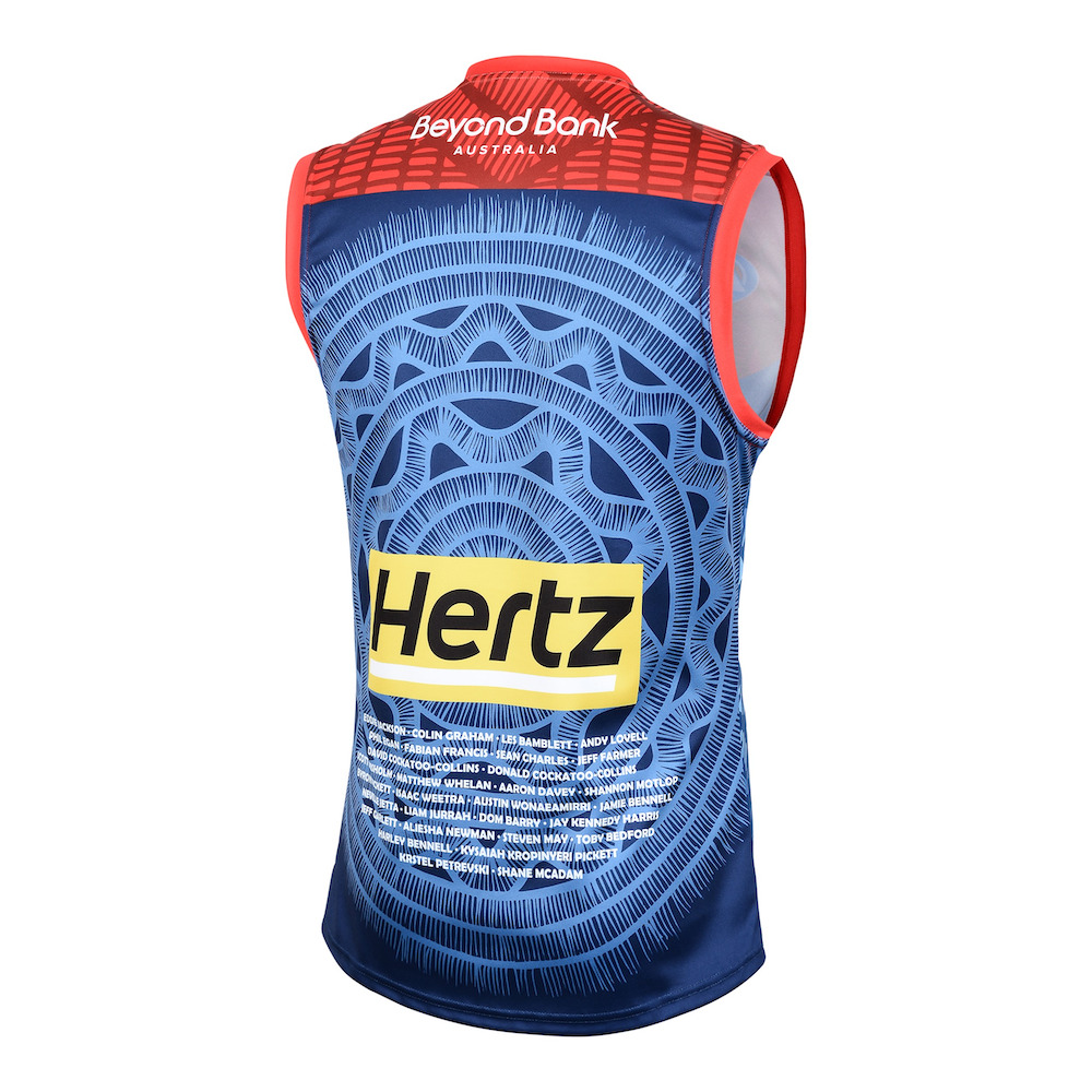 The Melbourne Football Club's 2025 Sir Doug Nicholls Round guernsey has been designed by Kevin Kropinyeri. Kevin is a proud Ngarrindjeri artist, comedian and sculptor.
